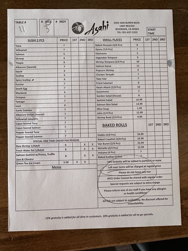 Welcome to Sushi Asahi, a gem located in Riverside, CA, where traditional Japanese cuisine meets a vibrant dining atmosphere. Known for its innovative menu, Sushi Asahi presents a delightful array of sushi rolls, including fan favorites like the Green Goblin and an assortment of deep-fried options that entice the palate.